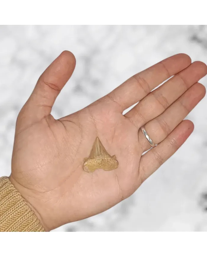 Plongez dans les profondeurs de la préhistoire avec cette véritable dent fossile de Cretolamna appendiculata ?, un vestige de la fin du Crétacé, vieux de plus de 70 millions d’années ! Ce spécimen rare, extrait des gisements phosphatés de Khouribga au Maroc, appartenait à un redoutable prédateur, ancêtre des grands requins blancs modernes.