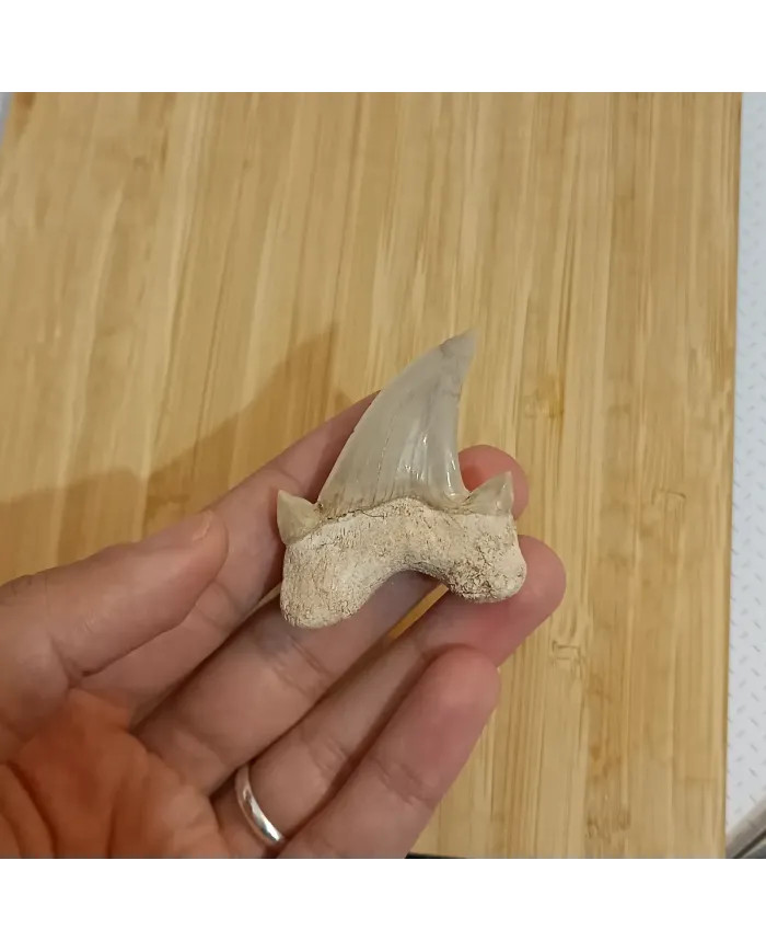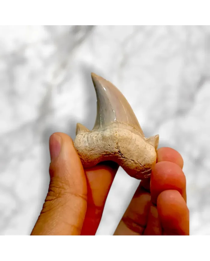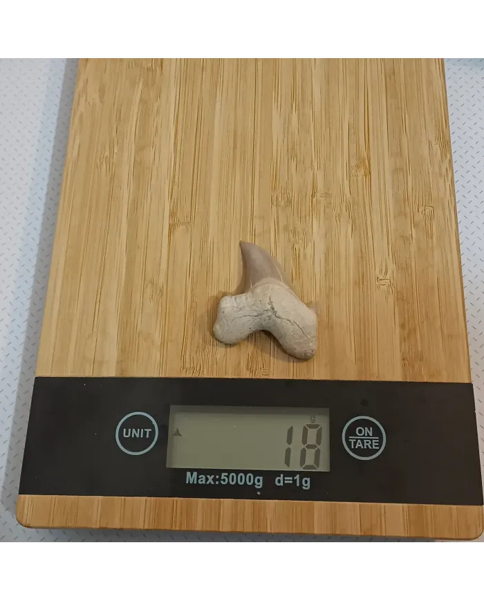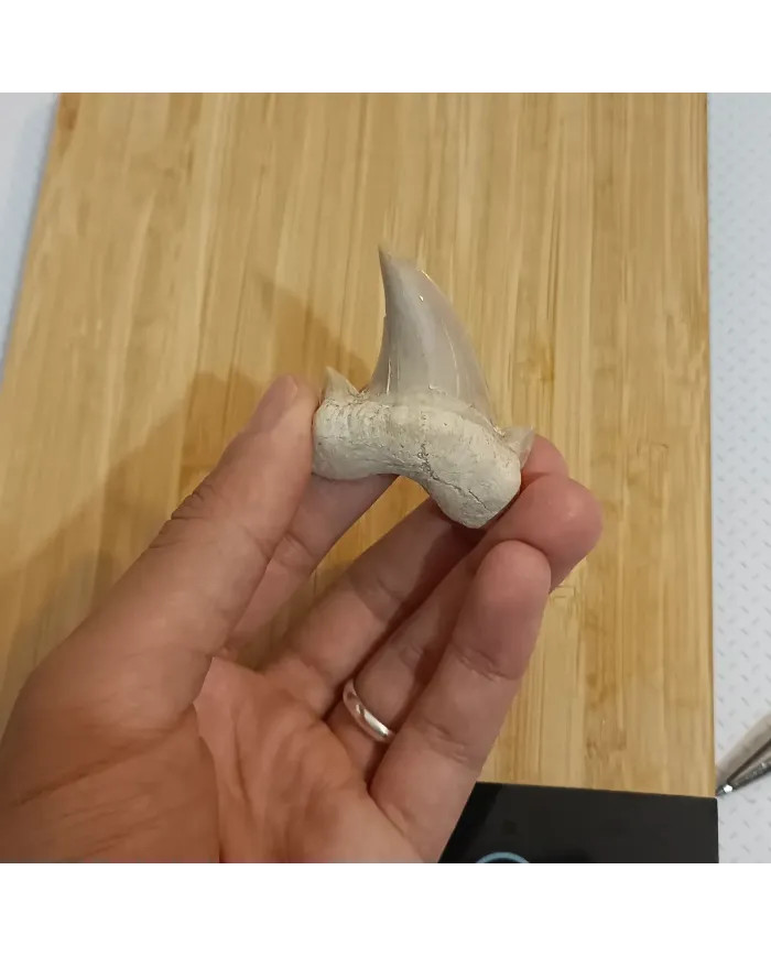 Découvrez cette authentique dent de requin fossile d’Otodus obliquus, vestige fascinant d’un monde océanique préhistorique. Mesurant 4,2 cm de long, 3,8 cm de large et 1,3 cm d’épaisseur, cette relique naturelle vous invite à explorer les profondeurs d’un passé lointain.