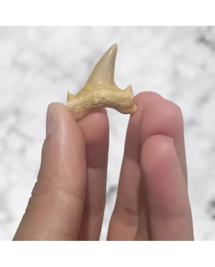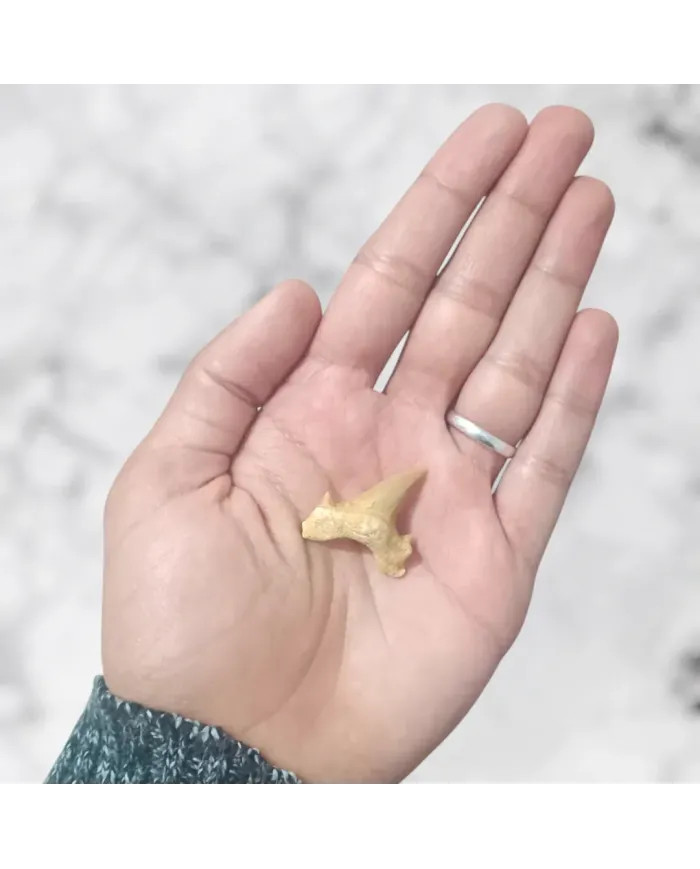 Plongez dans les profondeurs de l’océan préhistorique avec cette dent de requin Otodus obliquus magnifiquement conservée ! ? Ancêtre du grand requin blanc, ce redoutable prédateur des mers anciennes est aujourd’hui représenté par ce fossile triangulaire aux teintes naturelles brunes, témoin d’une époque fascinante.