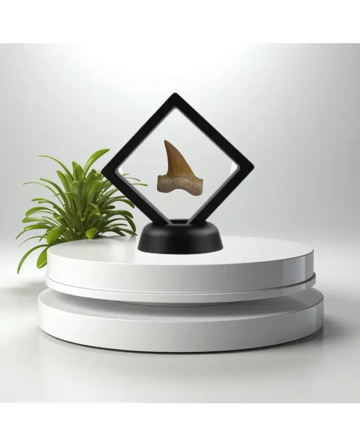 ? L’Otodus obliquus pouvait atteindre jusqu’à 10 mètres de long. Ses dents acérées et puissantes lui permettaient de capturer des proies rapides comme des poissons ou des céphalopodes. Fossile emblématique, cette dent témoigne de la richesse des océans préhistoriques et du rôle de prédateur suprême de cette espèce.