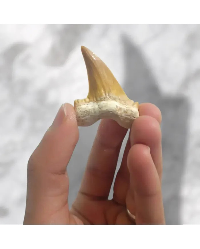 Cette dent présente une excellente conservation, avec des bords effilés, une belle courbure naturelle et une teinte brun sable ?. Elle est idéale pour :