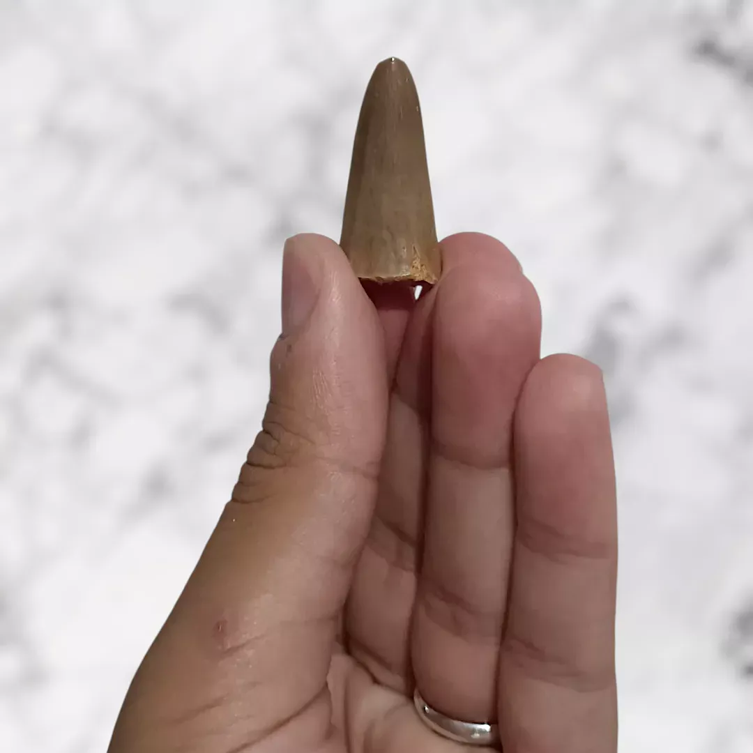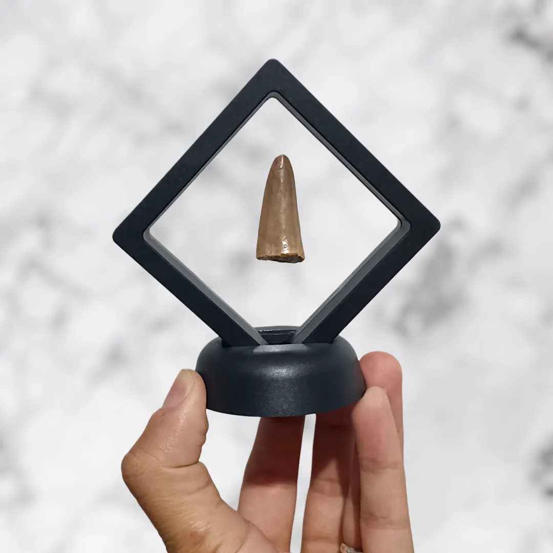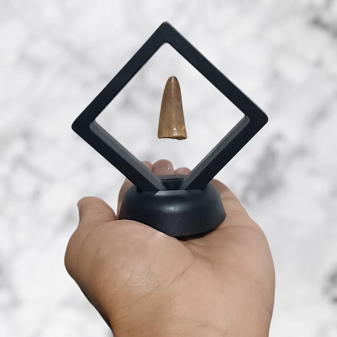 ? Cette dent fossile extrêmement rare provient de l’espèce méconnue mais fascinante Khinjaria acuta. Issue des célèbres gisements phosphatés de Khouribga, elle se distingue par sa forme courbée élégante et sa pointe acérée. Son excellent état de conservation en fait une pièce de choix pour toute collection de fossiles ?.