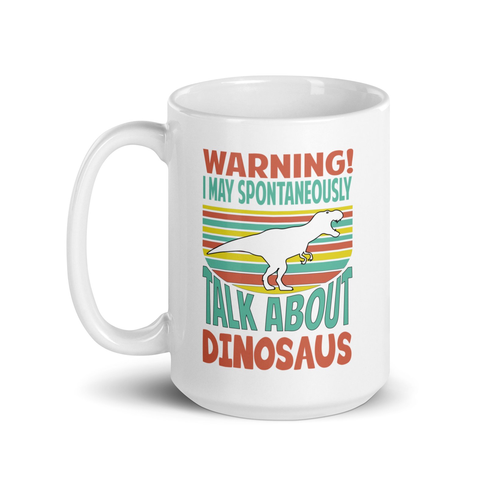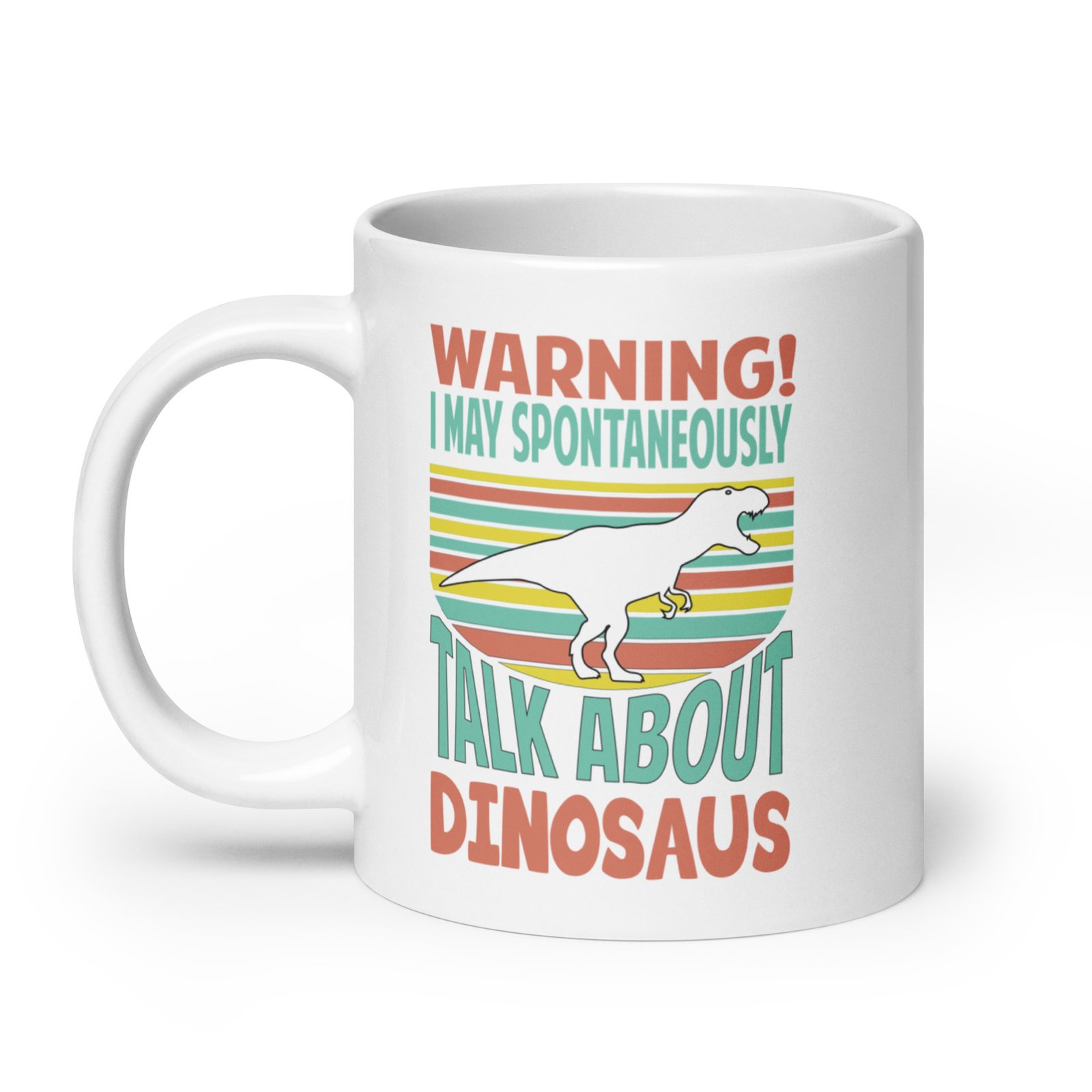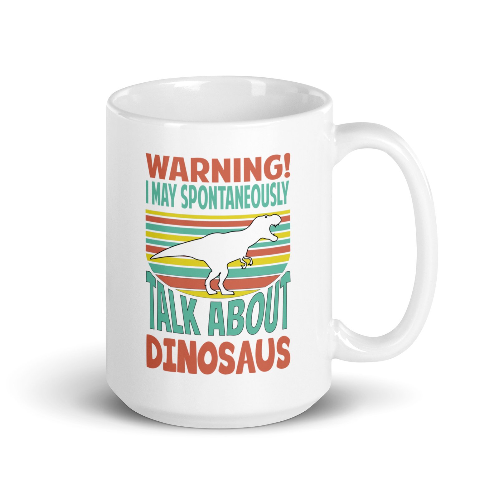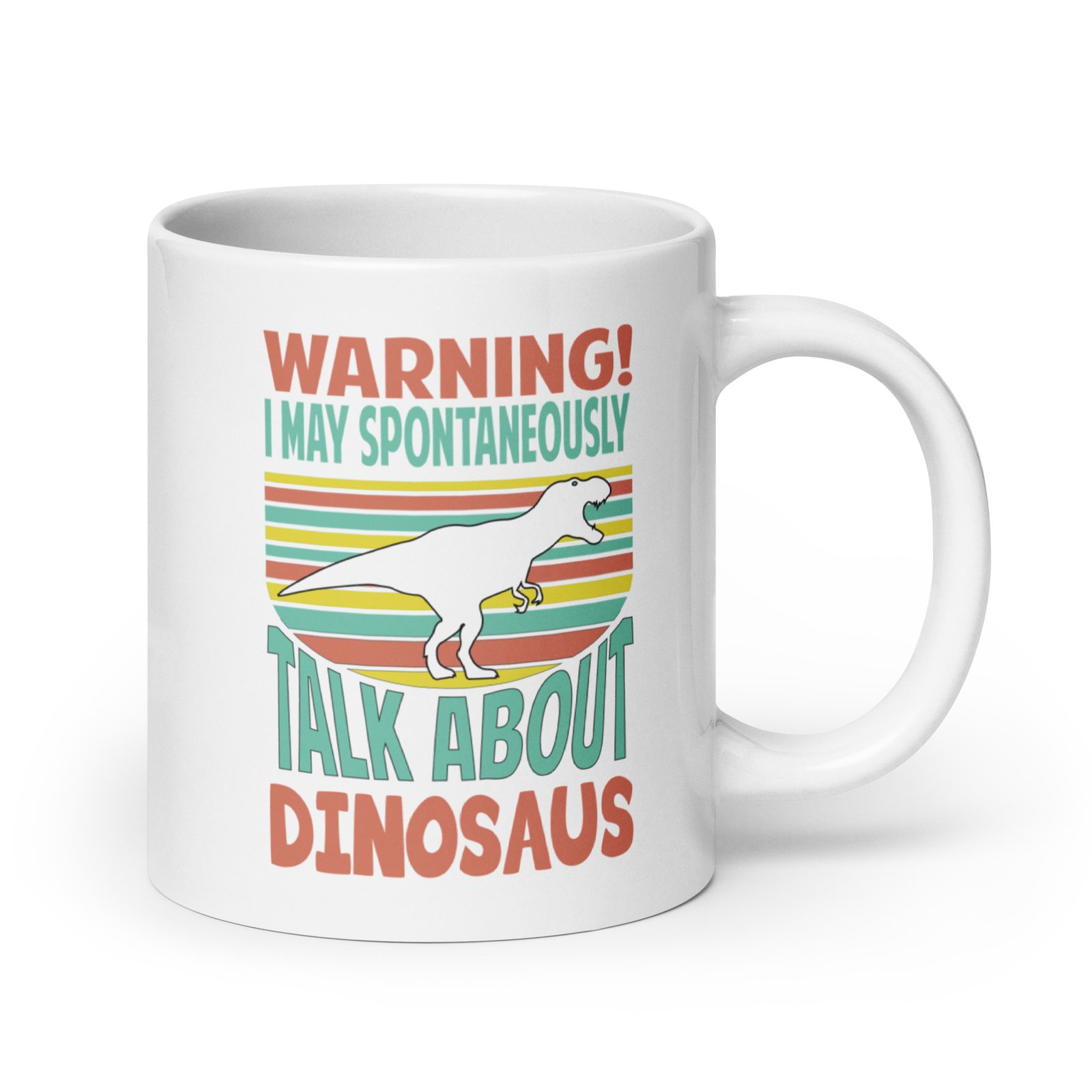 Introducing the perfect mug for the dinosaur enthusiast: our “Warning: I’m Spontaneously Talking About Dinosaurs” mug. Whether you’re drinking your morning coffee, evening tea, or something in between, this mug is designed to bring a smile to your face and start conversations about your favorite prehistoric creatures.